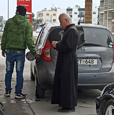 Papaz efendi Güneyden gelerek Gönyeli Yenikent de bulunan Kıbrıs Türk Petrolleri istasyonundan yakıt aldı. en son rum kilisesi güneyindeki yurttaşlara "kuzeyden alışveriş yapmayın" lafcıklarına karşın kahraman papaz parasının değerini de gözönüne alarak deposunu doldurdu. Yurdum insan bu duruma "Papaz da akaryakıt partisine katıldı" yorumunu yaptı.