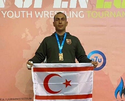 Estonya'nın Tallin kentinde yapılan 'Tallin Open Uluslararası Güreş Turnuvası'nda bronz madalya kazanan sporcu.