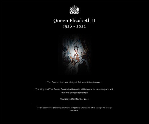 BBC fonda İngiliz marşı eşliğinde ölüm haberini halkla paylaşırken bu haberi verecek sunucu siyah kravat takıyor. Birleşik Krallık'ta tüm bayraklar yarıya indirilirken sadece kraliyet sancağı dalgalanıyor.