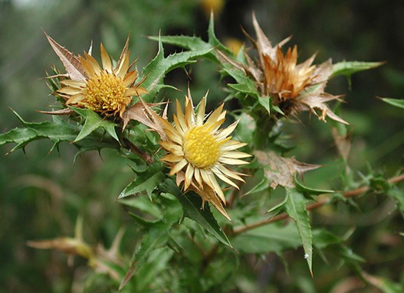kıbrıs'a özgü iki türü olan göbeği altın sarısı, petalleri kırmızımsı turuncu çiçekli, ağustos-ekim aylarında çiçek açan dikenli bir bitki.
